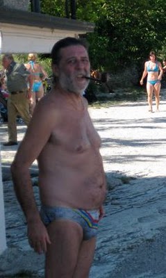Giovanni. Italiaanse mannen houden van Speedo's. Zo ook Giovanni. Deze emballagemedewerker van de Coop in Rimini denkt dat hij de mooiste man is van de oostkust. Hij krijgt ook spatjes. Kijk maar naar die nonchalante blik in zijn donkere ogen. En dan die pijp!